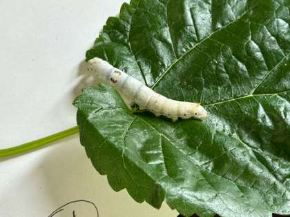 蚕が葉を食べるようすを観察して、見たことや不思議に思ったこと、今後の成長予想などを記録していきました。