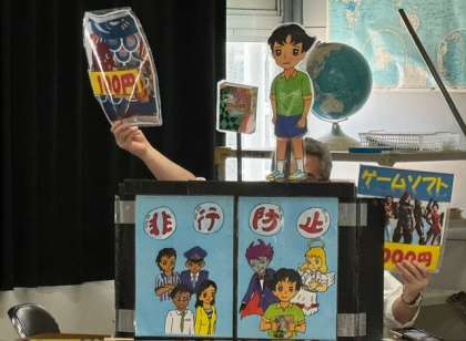 万引きでは、どうしてもほしいゲームや本などがあったとき、いけないとわかっていてもほしい気持ちに負けてしまうことがあります。ペープサートでわかりやすく伝えていただきました。