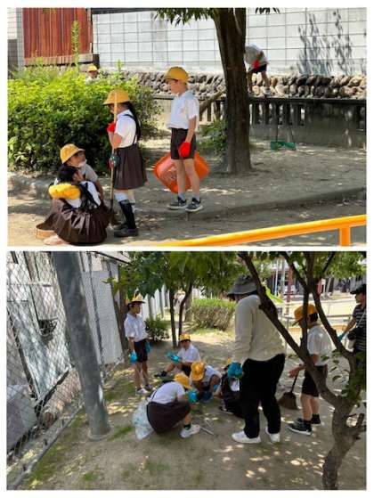 気温がぐんぐん上がる中でしたが、清掃用具を使ってごみを集めていました。