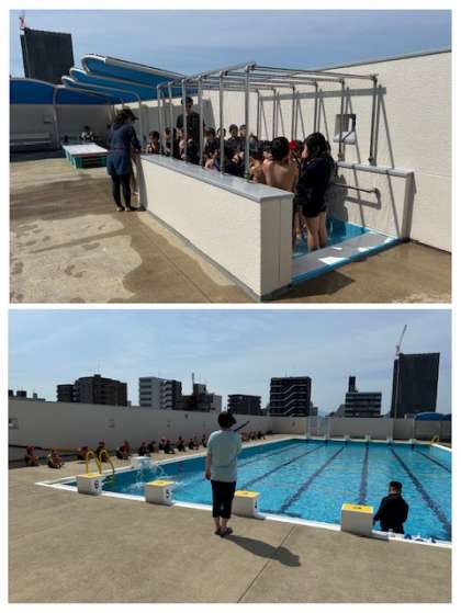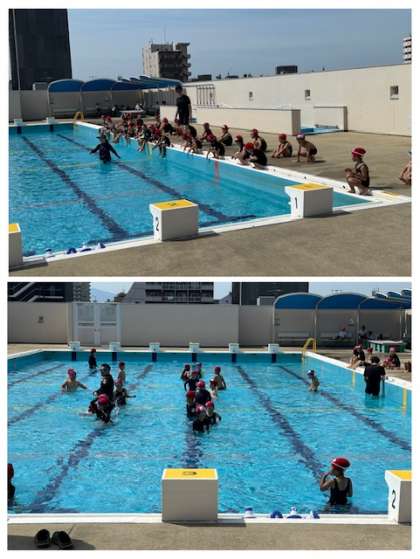 健康観察や準備の確認をしていただき、子どもたちがプールに入ることができています。