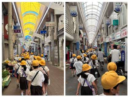 地域の商店街では、様々なお店で買い物をしているようすや、お店のようすを見学することができました。