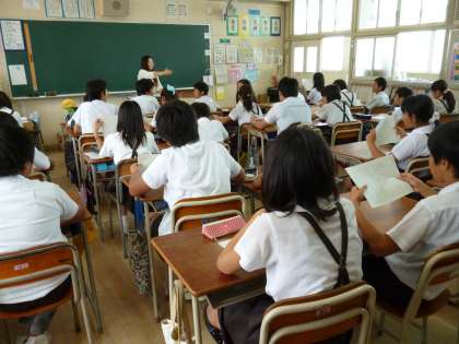 小中学校の生徒・児童・教職員の交流を通して、小中一貫した教育の充実をめざす取り組みの一つ『中学校から出前授業』を10月9日(水)に行いました。6年生が相生中学校の国語科の先生に「読書感想文の書き方」を教わりました。資料として児童の馴染みのある昔話を使い、よい作文・さらによい作文・悪い作文のそれぞれの例を比較して、どのような書き方がよいのか自分たちで見つる「問題解決学習」をしました。時折笑いが飛び交う楽しい学習になったようです。中学生への期待がもてる授業でした。