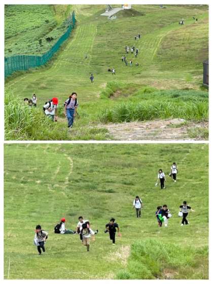 急な勾配をものともせず、登る子どもたち!