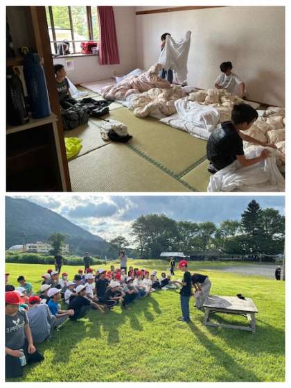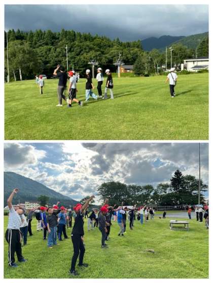 起床後、洗面、部屋の片付けなどをして朝の体操をしました。