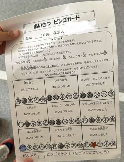 ・目を見てあいさつ・自分から・聞こえる声で・笑顔で・朝のあいさつ以外で