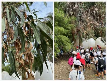 場所を変えてどんぐりや、珍しいユーカリの葉を拾いました。