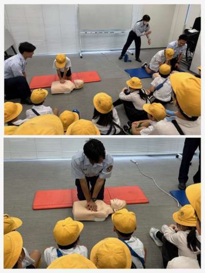 3つのグループに分かれて、救急救命、消防活動、映像による消防についての座学などを体験することができました。
