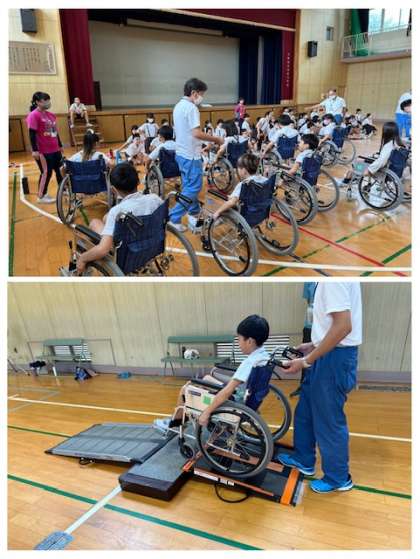 大阪市立心身障がい者リハビリテーションセンターから来ていただき、車いす体験をしました。