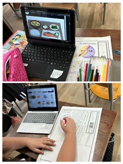 国語で学習した「くらしの中の和と洋」について、インターネットの情報も取り入れて新聞づくりをしています。