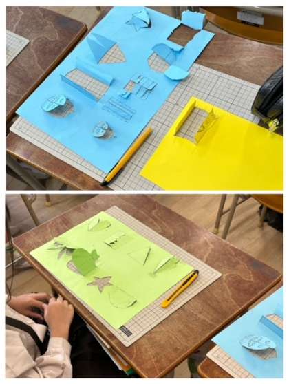 色画用紙にかいた絵の窓を開けています。