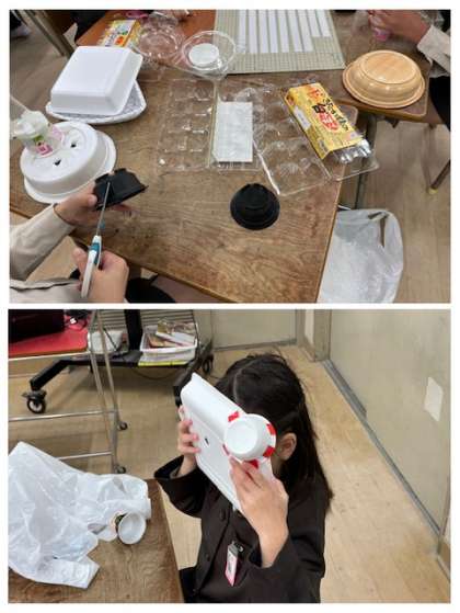 ビニル袋やトレイ、プラスチック容器などを使い、ビニルテープを貼って型を作ります。
