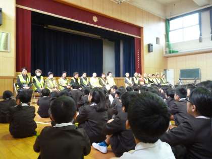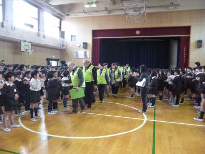 日頃からお世話になっている地域の見守り隊の方々へのお礼の会を行いました。一学期は1年生がメッセージをかき、地域のふれあい会館に掲示していただき、感謝の気持を伝えました。今回はお招きしてみんなでお礼の会をしました。代表で2年生と6年生が言葉を述べたり演奏をしたりして感謝の気持ちを表しました。