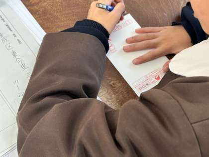 事前に、宛名と差出人のメモを用意をして取り組みました。