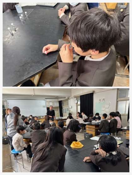 グループでにおいを確かめながら、オリジナルの香水を楽しんで作っていました。