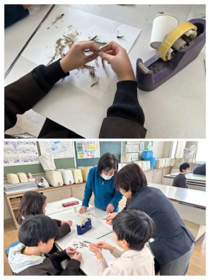 今日はゲストティーチャーに来ていただき、かたくちいわしの解剖に挑戦です。