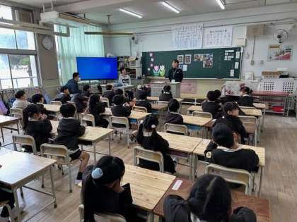 1年生は栄養職員の先生から、初めての給食についてお話がありました。