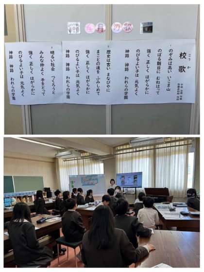 みんなで歌うとうれしくなってきますね。私たちの校歌を大切に歌っていきましょう。