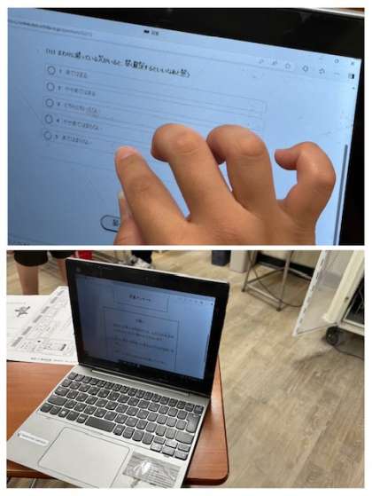 児童アンケートには、タブレットを使ってオンラインで20分程度で回答しています。