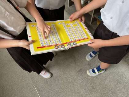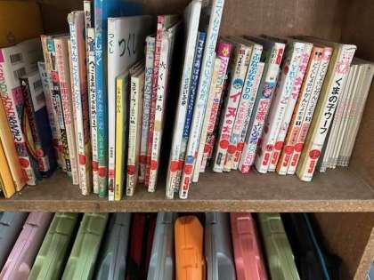 教室の近くには、学級で読める図書が置かれています。また、図書室でも毎週火曜日には図書館補助員の方に来ていただき、休み時間に貸し出しをしていただいています。