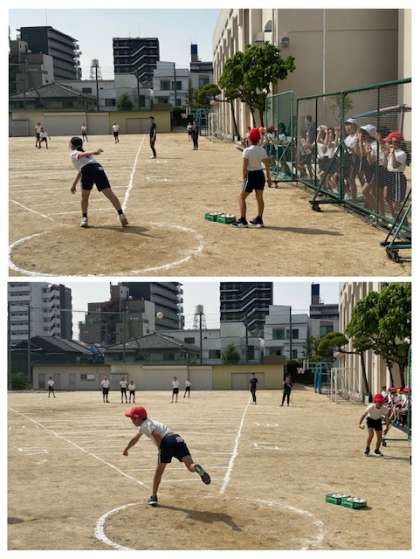 1年生は初めてのソフトボール投げは、うまくいったでしょうか?