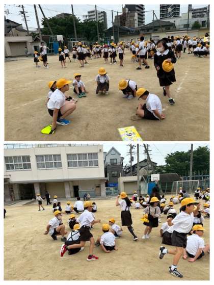5月の歌を歌った後、集会委員会によるハンカチ落としをしました。