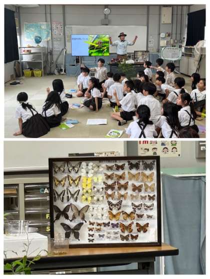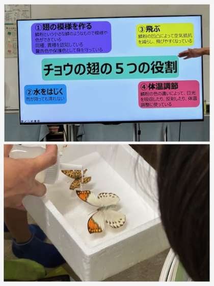 オオムラサキ研究所からゲストティーチャーに来ていただき、オオムラサキについて学びました。毎年3年生で授業をしていただいています。