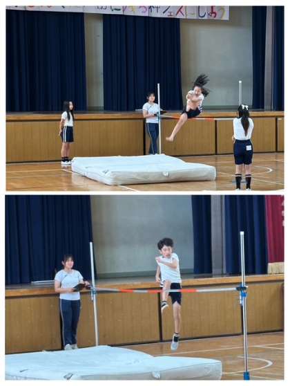 走り高跳びでは、バーの位置を少しずつ高くしていき、クリアすると歓声をあげていました。励まし合って跳ぼうとする姿がうれしいですね。