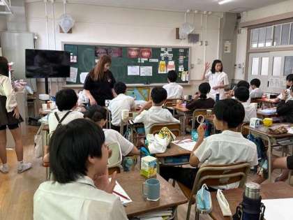 6年生は、鏡を使って自分の歯ぐきを観察してみました。
