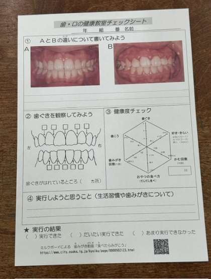 生活習慣や歯みがきについて見直して、改善したいことを記入していました。
