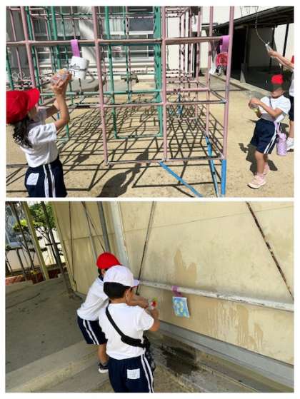 的にめがけて、水鉄砲で楽しんでいます