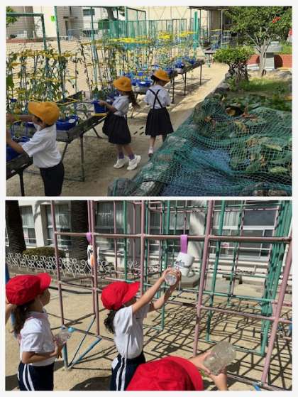 アサガオをおうちに持ち帰ろうとしていますが、友だちのつると絡み合ってなかなか取れずに困っていました