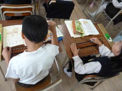 3年生の算数で、そろばんの学習をしますが、2日間にわたり、ゲストティーチャーを招いて学習しました。子どもたちは、真剣にお話を聞いて学習できました。