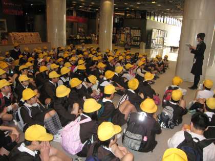 お天気が心配でしたが、遠足に行くことができました。民族博物館では、班ごとに広い展示コーナーを上手に回ることができました。お弁当を食べた後、万博公園で楽しく遊びました。帰りはソラードへいき、展望台へあがりました。