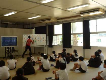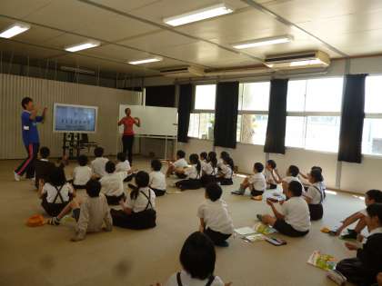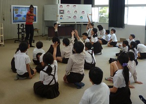 5月13日 毎週金曜日には、ネイティブスピーカーの先生にきていただき、楽しく英語に親しんでいます。歌や動作を交えて楽しんでいます。