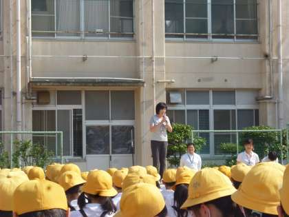 5月23日 今日の朝会で新しく来られた先生の紹介とみんなの登下校の安全をパトロールしてくださる通称「あんパトさん」からのお話がありました。