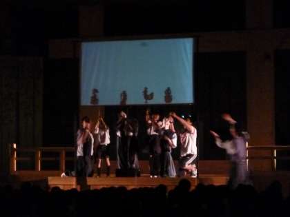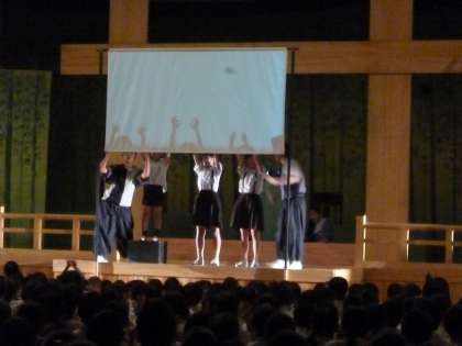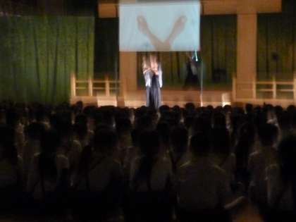5月28日 土曜授業で芸術鑑賞会を行いました。影絵を使った「三枚のおふだ」というお話でした。1時間30分の上演でしたが、時間の過ぎるのを忘れるほど、楽しさ満載の劇でした。手影絵のワークショップでは、みんなの前で影絵に挑戦するお友だちにみんなが応援しました。