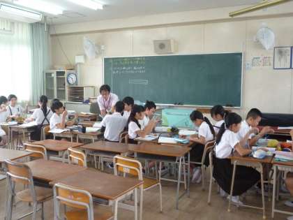 6月5日 5年生は家庭科の学習で学んだ玉結びや玉止めを使ってボタンを布にぬいつけていました。まだ慣れない手つきで針と糸をあやつっている子どもたちを参観に来られた保護者の方々はあたたかく見守っていました。6年生は算数科の学習「不思議な輪の変身」でした。少人数のグループに分かれて落ち着いた雰囲気の中、学習を進めていました。