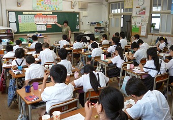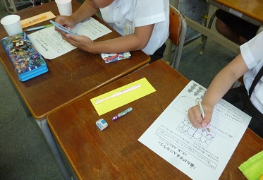 6月7日 今週は歯と口の健康週間です。歯みがきカレンダーを配布して歯みがきの励行をしています。今日は、3年生が自分の歯の磨き方が正しいか歯垢染色をして歯みがきのしかたを学習しました。子どもたちは手鏡で赤く染まった部分をカードに記入した後、きれいに歯ブラシで磨いていました。