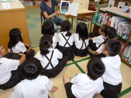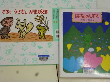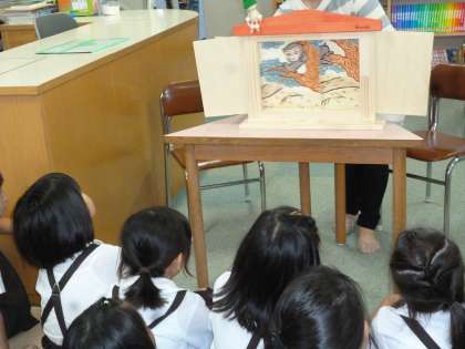 6月10日 地域の図書ボランティアさんによる本年度2回目のお話会がありました。「はなのしずく」の本の読み聞かせと「さるとうさぎとがまがえる」の紙芝居でした。あおがえるの『けろ』のおかあさんが病気になり、いいくすりをもとめて『けろ』が山や野原をさまよってしまいます。また、「さるとうさぎとがまがえる」は動物の由来のお話です。30人ぐらいの子どもたちが集まって楽しくお話をきいていました。
