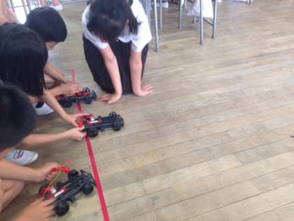 乾電池を使って「回路」を作り、モーターを回して車を走らせました。乾電池を一つつなげたときと、二つつなげたときのちがいはどうなったでしょう?また、“つなぎ方”によってもちがいがあるようです。