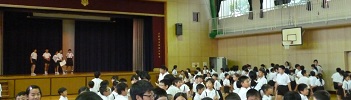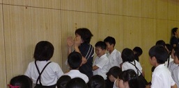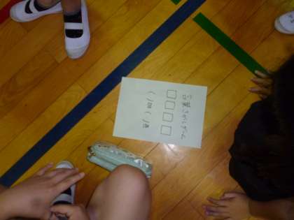 6月16日 集会委員会司会のゲーム「言葉さがし」でした。4つの文字を探して、その文字をつなげ言葉にします。神路っ子グループでまとまって、仲良く文字を探していました。答えは、「ふでばこ」でした。司会の集会委員会のやり取りも工夫されていて、楽しい集会となりました。