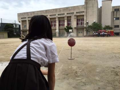 消火体験では、消火器を使って的に水を当てる練習をしました。本来ならば、消火器からは消火剤が出ますが、今回は練習用に水を使用しています。しかし、消火器の操作は本物と同じです。いざというときのための、貴重な訓練ができました。