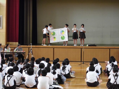 7月8日(金)「歯と口の健康について」をテーマに学校保健委員会を行いました。まず初めに、保健委員会が調査報告をしました。その後、6年生が8つのブースにわかれて、虫歯や歯周病、かみ合わせ等について調べたことを劇やクイズ形式で発表しました。5年生が各ブースを回り、感想をまとめ、意見交流の場を持ちました。学校歯科医の先生より、指導講評をしていただき、子ども達の歯を大切にしようという意識が高まりました。