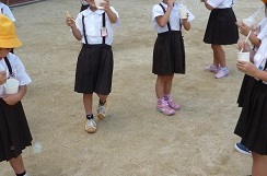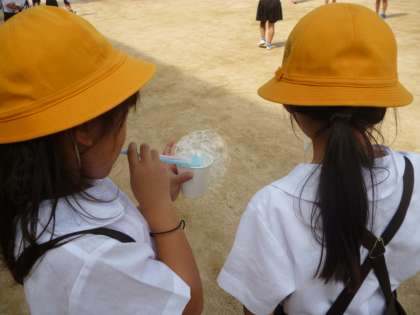 7月11日 1年生がシャボン玉をつくって遊びました。遊びの中からせっけん液の濃さやストローでの吹き方など工夫して、どのようにすればいろいろな大きさのシャボン玉が作れるか体験しました。とても楽しそうに活動していました。