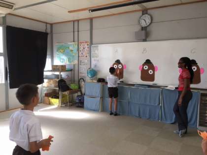 今日は、4年生でも、英語の授業がありました。4年生の子どもたちは、学期に数回のこの授業をとても楽しみにしています。