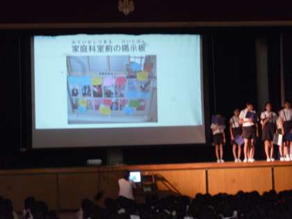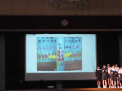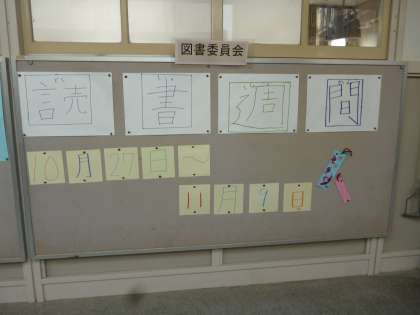 10月13日 本日の児童集会では図書委員会のみなさんが図書館で、本を見つけるときのポイントを紹介しました。「本棚には見つけやすいように分類がしてあり、本のラベルを頼りにすればよい。」と説明をしていました。読書週間は10/27〜11/9です。本に親しんでほしいと図書委員会では、掲示をしたり呼びかけたりしています。