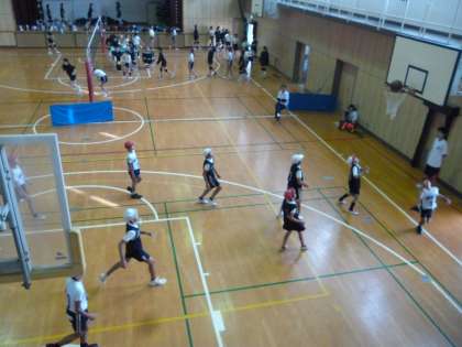 10月13日 体育館ではバレー部・バスケットボール部が活動していました。基礎練習やミニ試合を先輩たちに交じって一生懸命にがんばっていました。