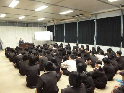東成警察署の方に来ていただいて、非行防止教室をおこないました。特に携帯電話の使い方について気を付けなければならないことを、教えていただきました。