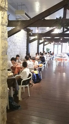サファリ見学も終わり、遊園地へ移動しました。そして、昼食です。早朝から出かけたこともあって子どもたちは楽しく会話しながら昼食をとっています。