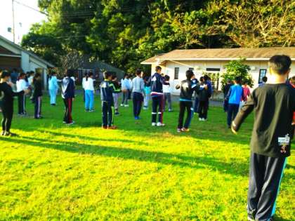昨日とは違いすばらしい朝日です。子どもたちはよく寝たようです。朝日を浴びながら体操をし今日の一日の予定をききました。